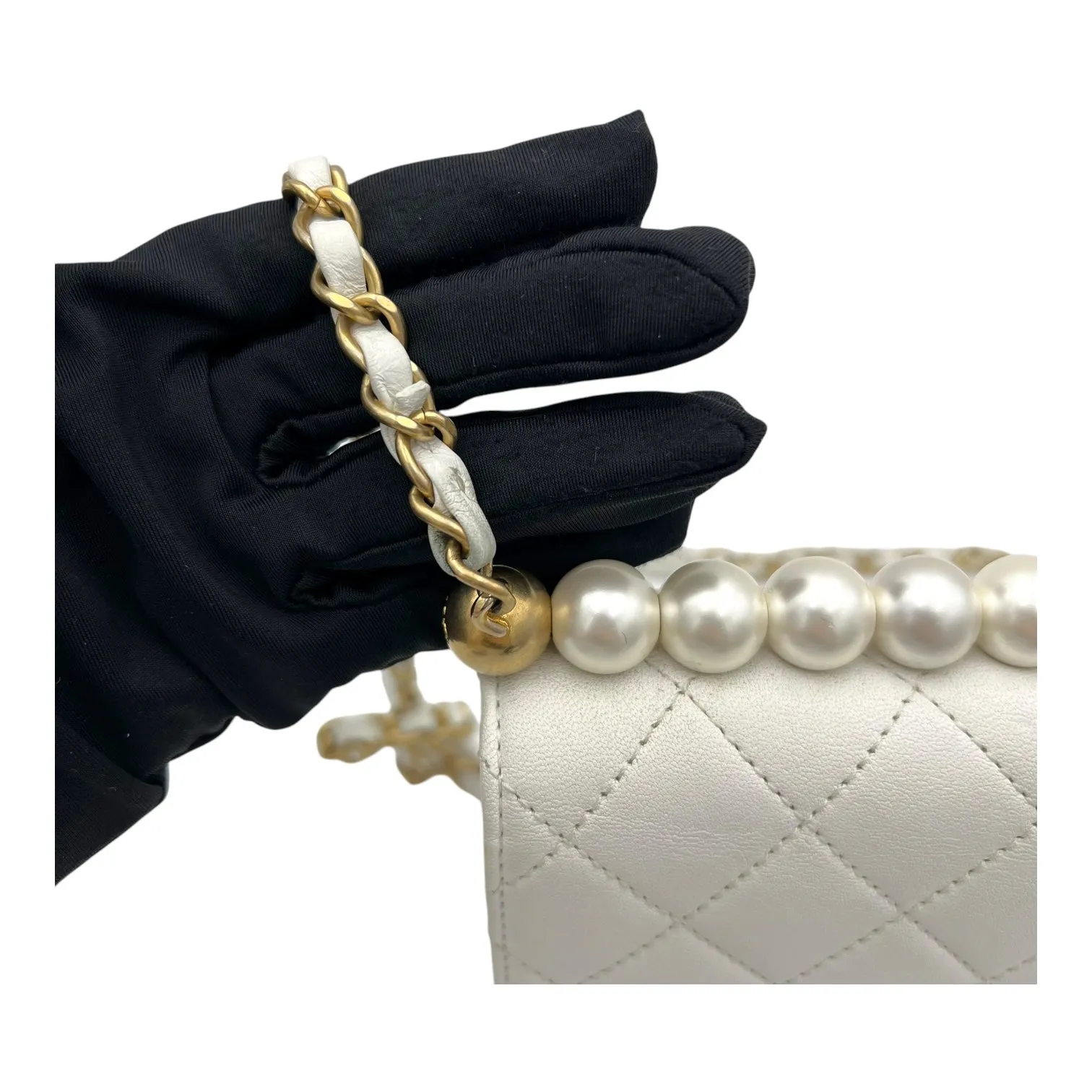 Bags Chanel Chic Pearls White Crossbody Bag in Lambskin, Gold hardware Good Condition White Crossbody Bag Women Lady Girl